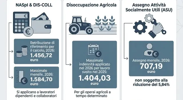 Indennità disoccupazione e ammortizzatori, gli aumenti del 2026: limiti di importo e massimali dalla Cigs a Naspi e Iscro