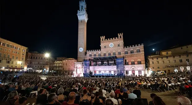 L'orchestra romana di Santa Cecilia e Stefano Bollani s'incontrano in piazza del Campo a Siena per il Concerto per l'Italia