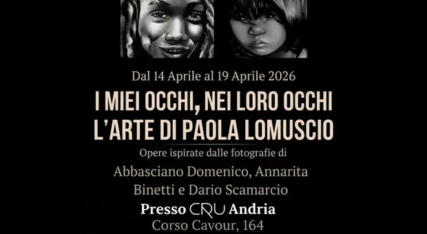Una mostra speciale: I miei occhi, nei loro occhi. Presso CRU, Corso Cavour 164, Andria (Puglia) Dal 14 al 19 Aprile 2026. Ecco l'arte di Paola Lomuscio. Dario...