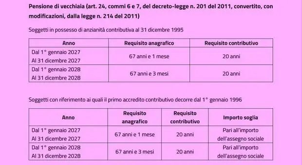 Pensioni, ecco a che età si andrà dal 2027: la tabella ufficiale dei requisiti Inps