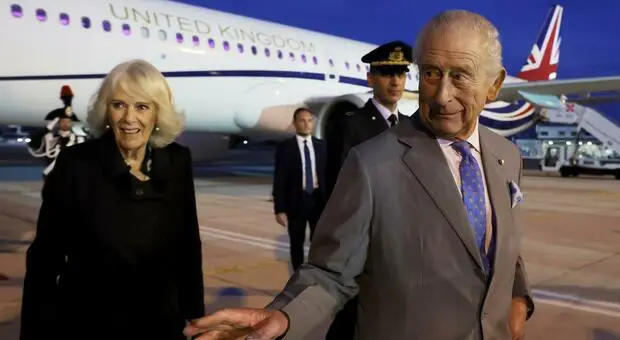 Un tappeto rosso disteso fin sotto la scaletta dell'aereo, ha accolto ieri sera a Ciampino Re Carlo III, in completo grigio e cravatta azzurra, e la Regina Camilla, in elegante abito...