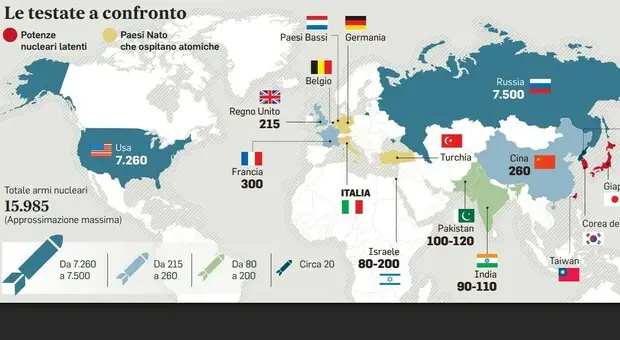 Russia e Stati Uniti possiedono ciascuno oltre 7.000 testate nucleari, di cui circa 1.550 operative. La Francia ne ha 290, il Regno Unito 220. Gli altri Paesi europei dipendono dallo scudo...