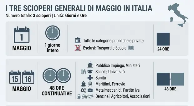 Scioperi a maggio 2026, dai treni agli aerei fino alla scuola: chi si ferma e quando. Tre sono quelli ?generali?