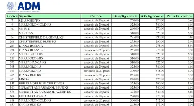 Da domani 16 gennaio aumenta il prezzo delle sigarette. L'Agenzia delle Dogane e dei Monopoli ha pubblicato oggi il listino con i nuovi costi relativi a quasi 400...
