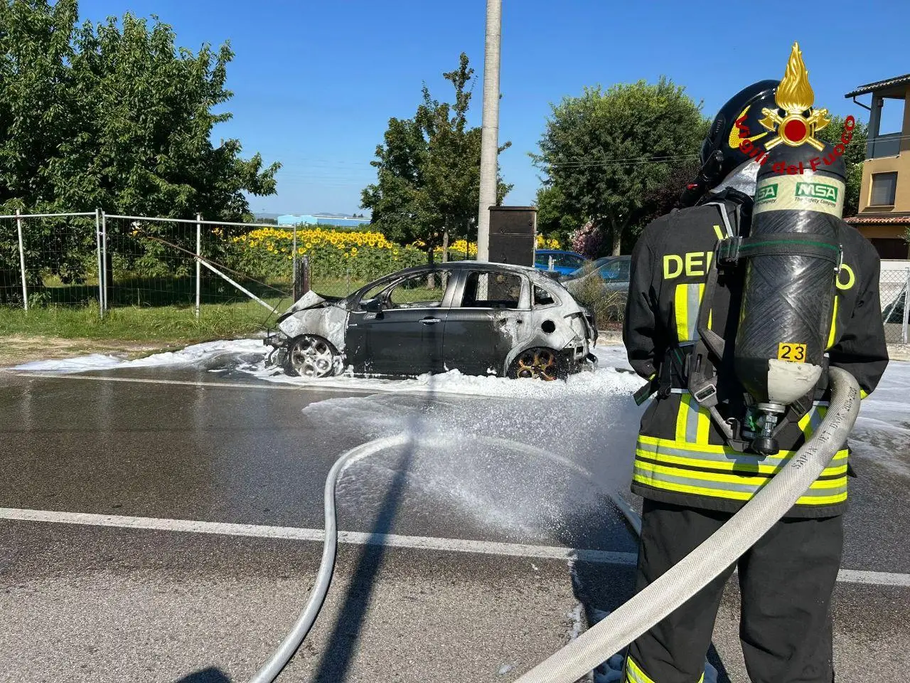 Auto in fiamme a Forlimpopoli, intervengono i vigili del fuoco