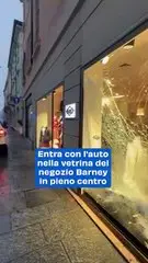 Entra con l'auto nella vetrina del negozio Barney in pieno centro. Il video