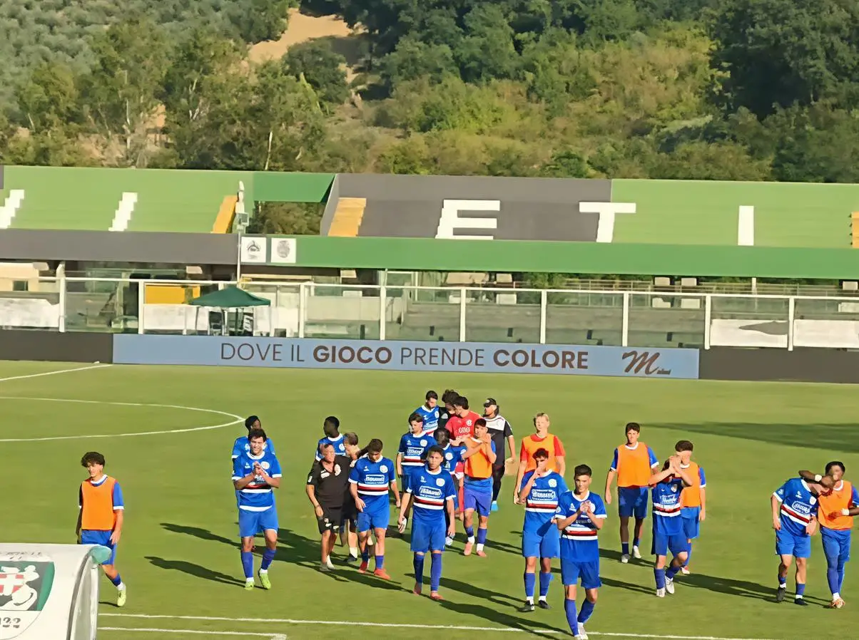 Passano i locali dopo 4’, gran punizione di Fabbri riporta i ragazzi di Giuliodori sul pari, espulso Likaxhiu, Bucchi colpisce la traversa al 37’