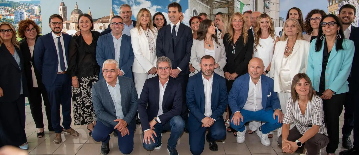 Ad Ancona la presentazione dei trenta candidati, Leonardi: avremo risultato anche migliore del 2020. Acquaroli: "Campagna avvelenata dalle polemiche, noi parleremo di risultati, progetti e prospettive".