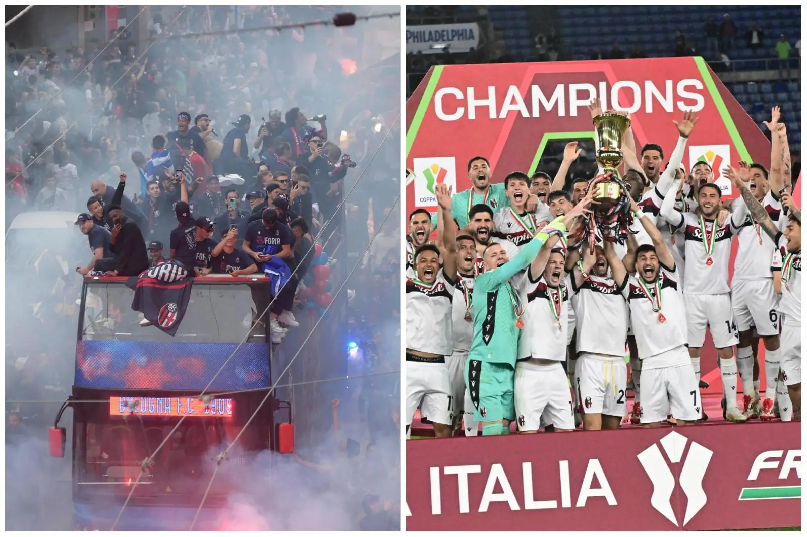 Bologna in festa per la Coppa Italia: la parata con il pullman