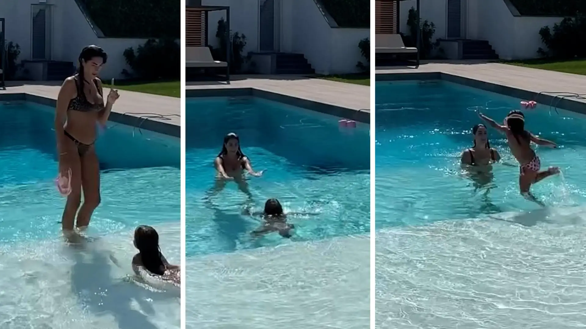 La compagna di Valentino Rossi, mamma tuttofare: le lezioni di nuoto alla figlia e il suo tuffo a bomba