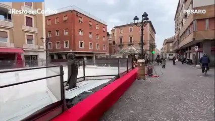 La statua di Pavarotti 'affogata' nella pista del ghiaccio: il video a Pesaro