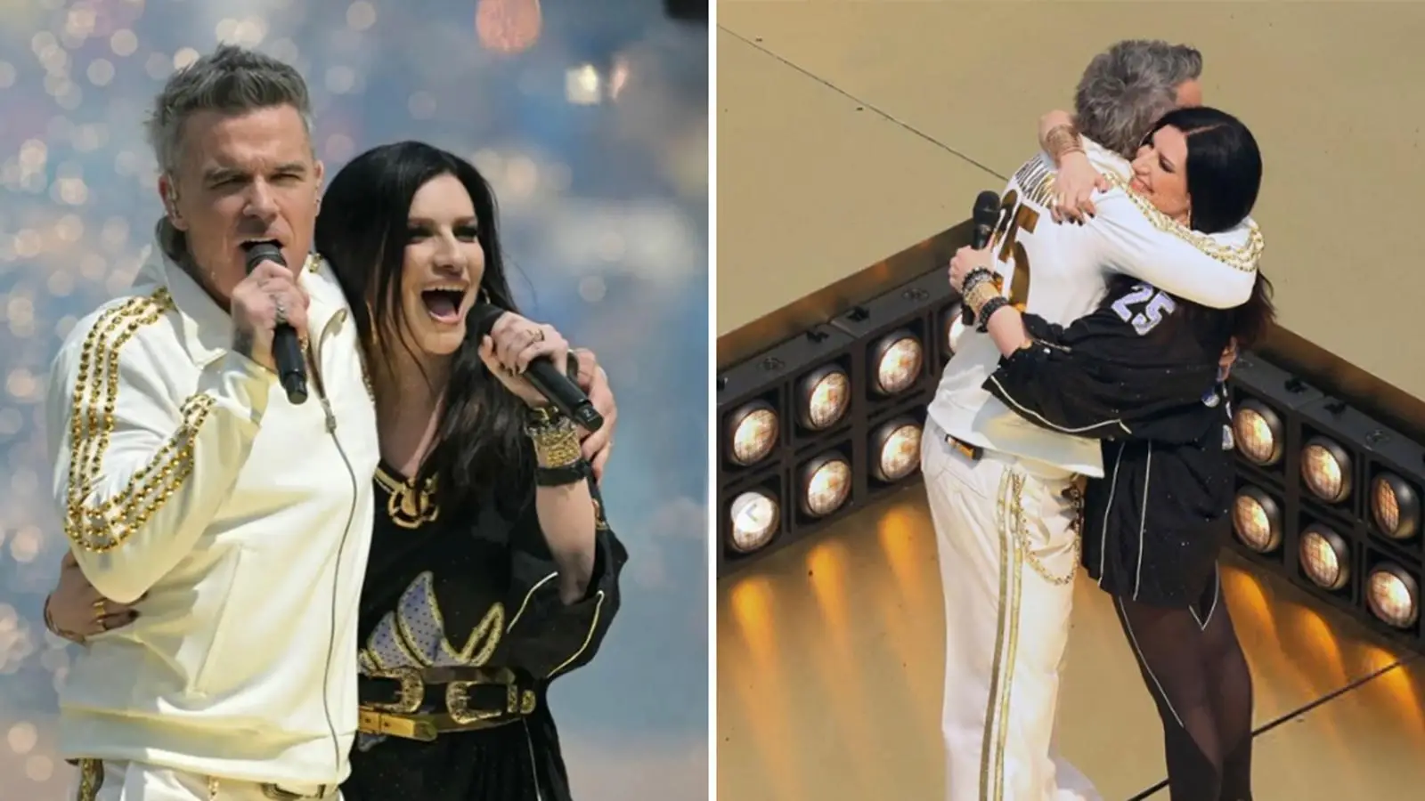 Laura Pausini e Robbie Williams a New York: spettacolo e abbracci sul palco. Il look scelto