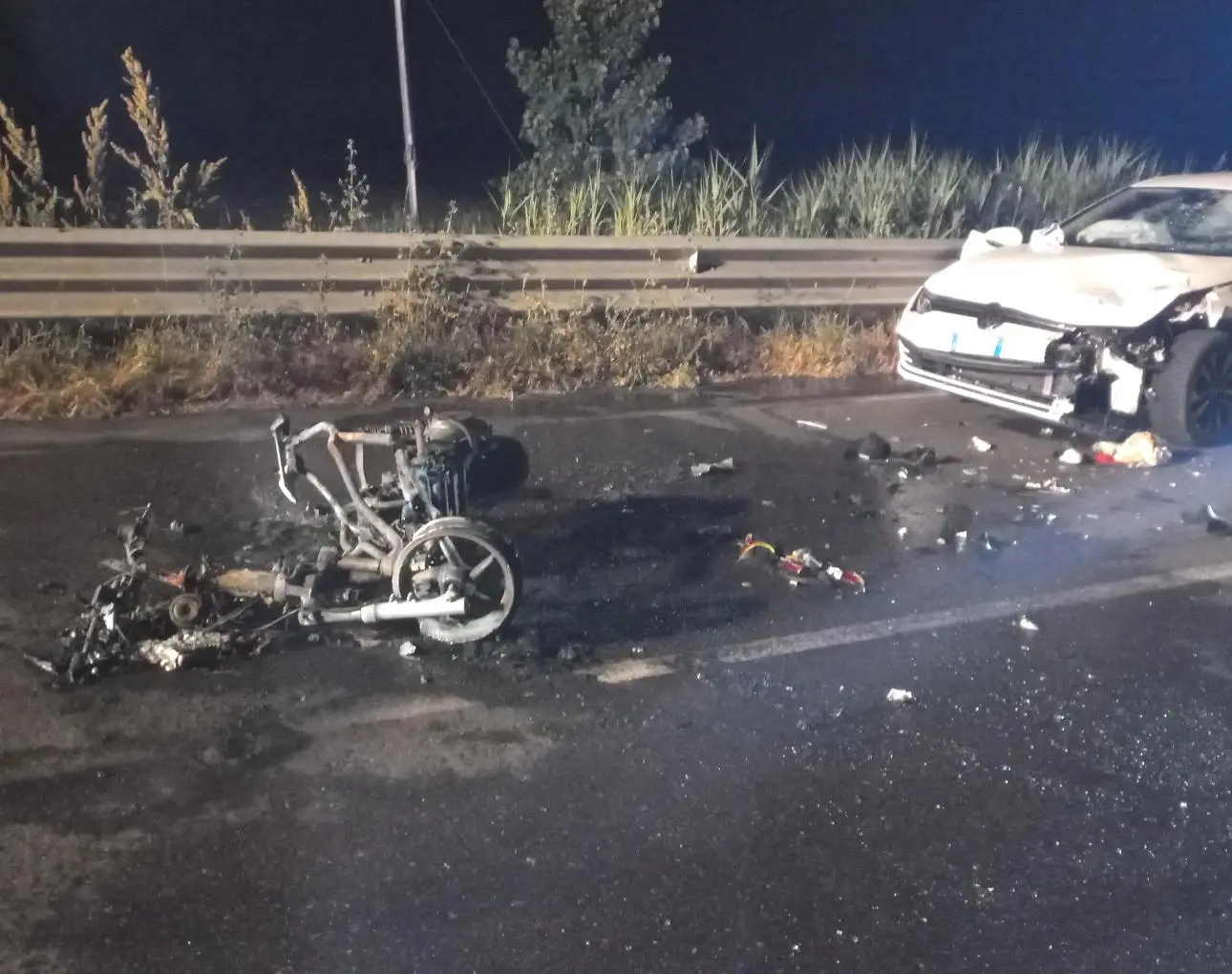 Novellara, scooter prende fuoco dopo schianto con auto