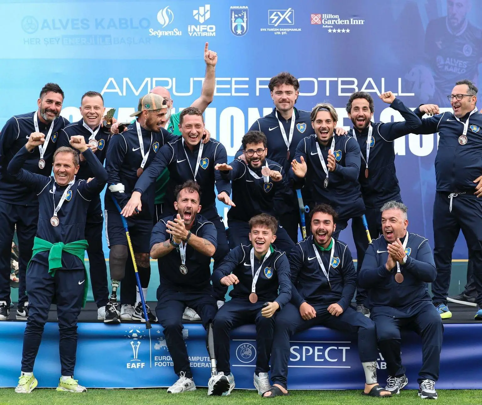 Il mister Palazzi porta il Fano calcio amputati al bronzo in Champions League, puntando ora al prossimo scudetto.