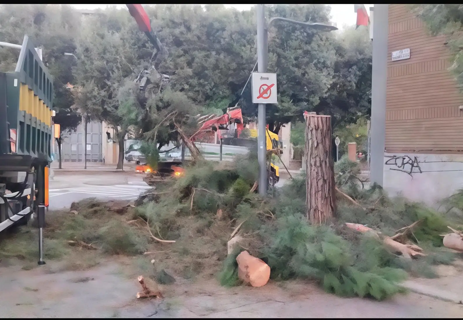 Gli operai l’hanno tagliato ieri alle 6 del mattino. Gli attivisti: "Tradimento". Parco 11 settembre, pianta crollata. L’amministrazione: "Colpa della pioggia". .