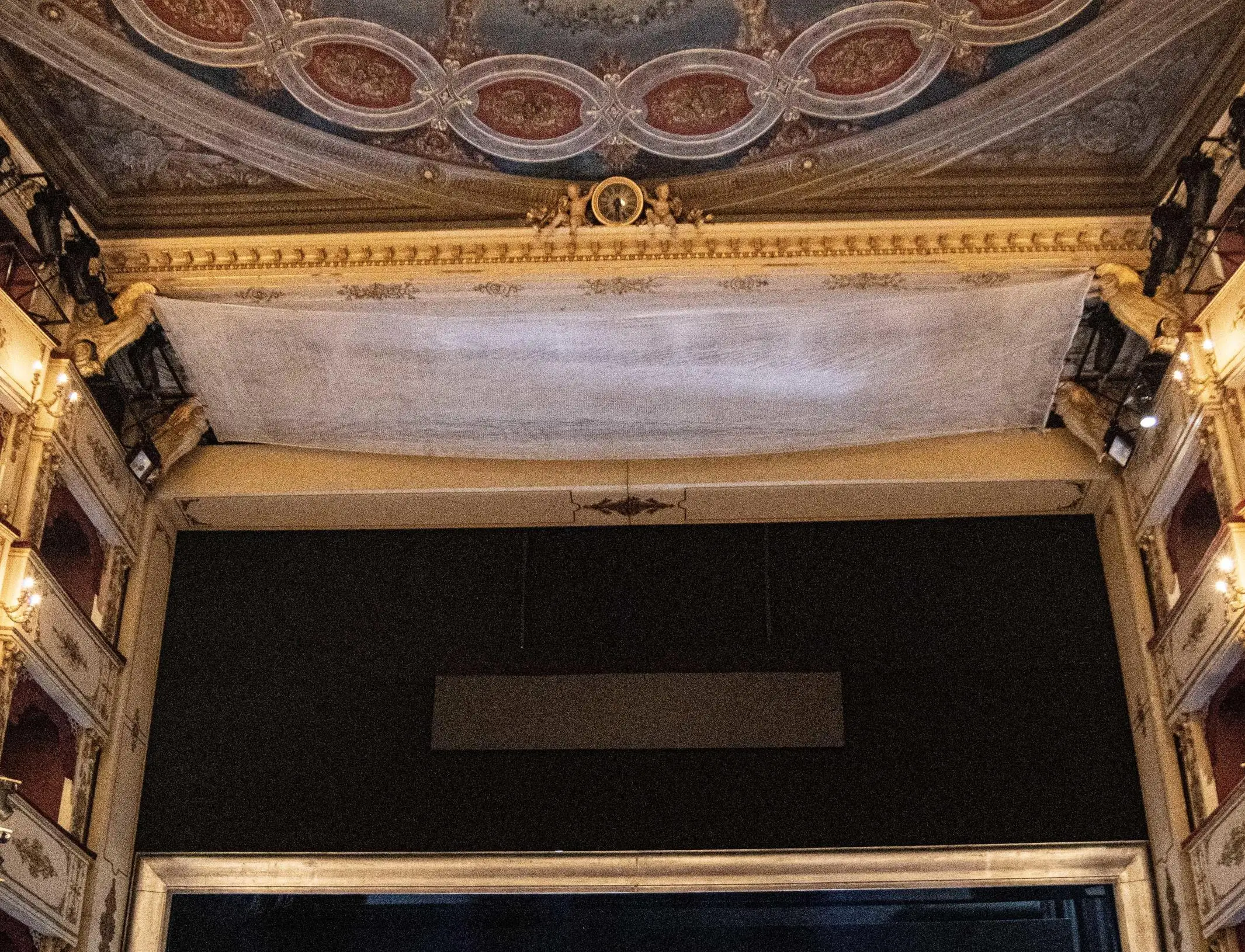 Alcuni pezzetti erano caduti domenica scorsa poco prima dello spettacolo "La cambiale di matrimonio". Il responsabile degli allestimenti scenici: "Un frammento era precipitato nella buca degli orchestrali. Da lì l’allarme".