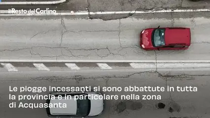 Strade disastrate dopo il maltempo nel Piceno, il video
