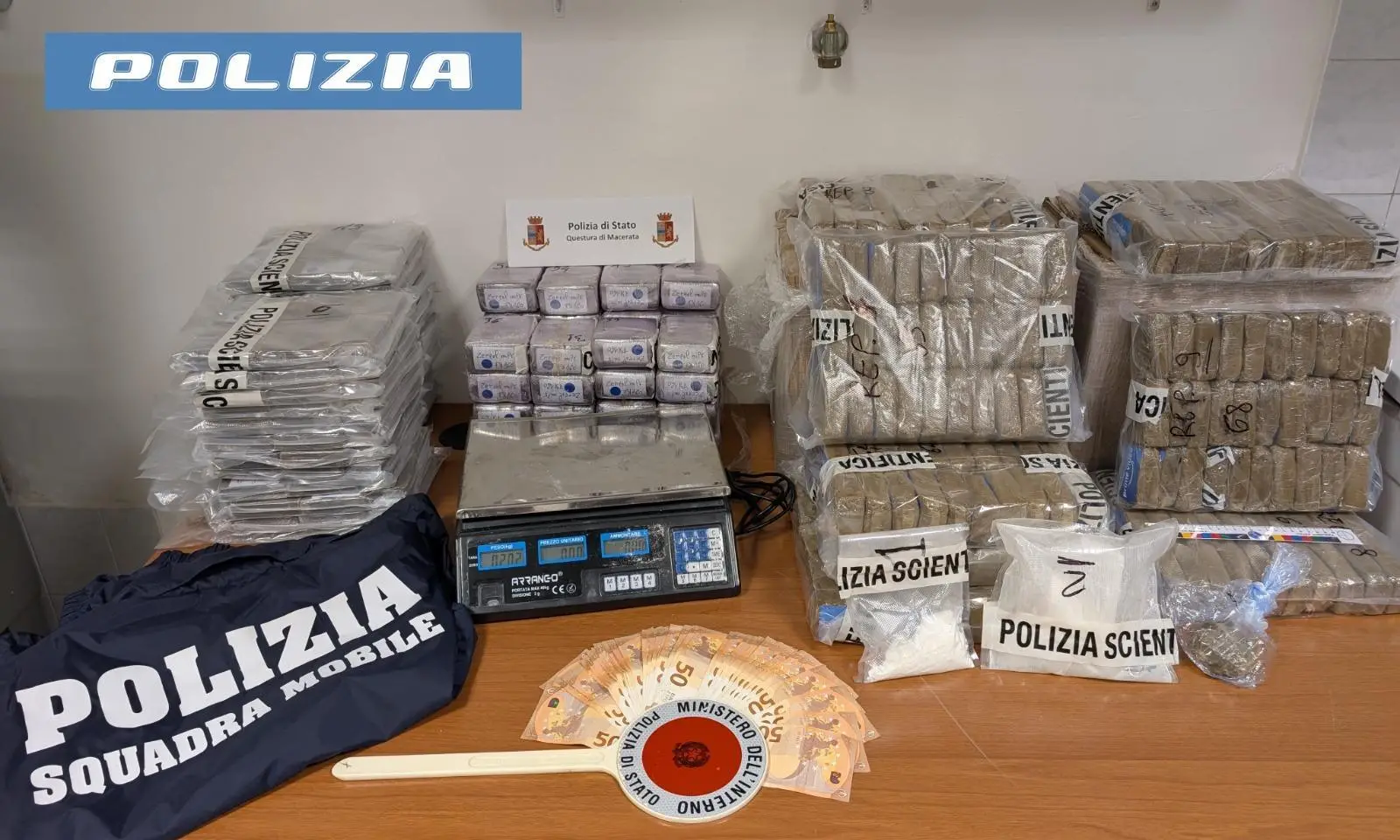 Blitz della polizia al confine tra Civitanova e Porto Sant’Elpidio: scovato il maxi deposito. Stroncato un giro d’affari da oltre 200mila euro. Sequestrati anche contanti e cocaina.