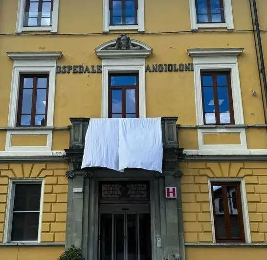 Un ’sudario’ sulla facciata dell’Angioloni