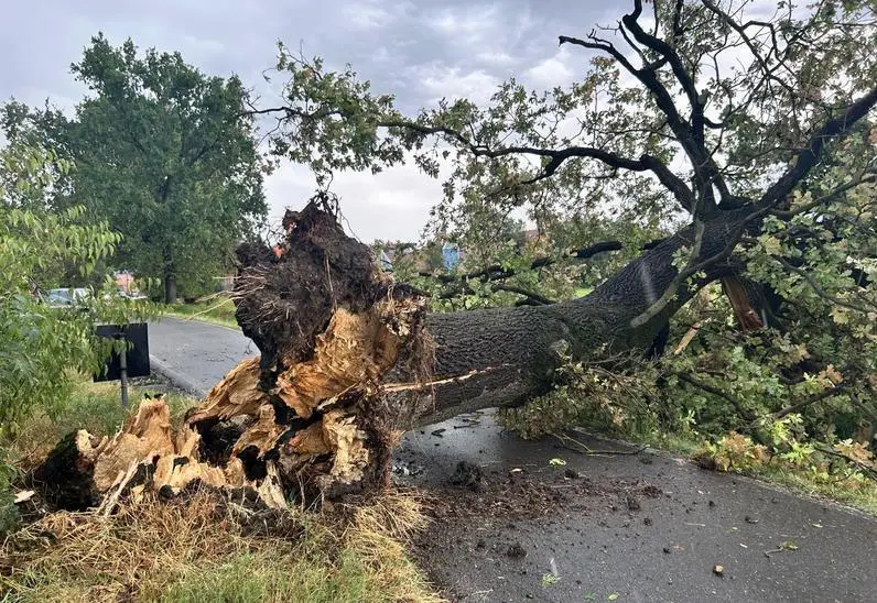 Violento temporale. Vento e grandine . Alberi caduti, blackout, e strade bloccate