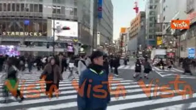 All'incrocio di Shibuya a Tokyo, il più trafficato al mondo, scatta il verde la corsa per il selfie