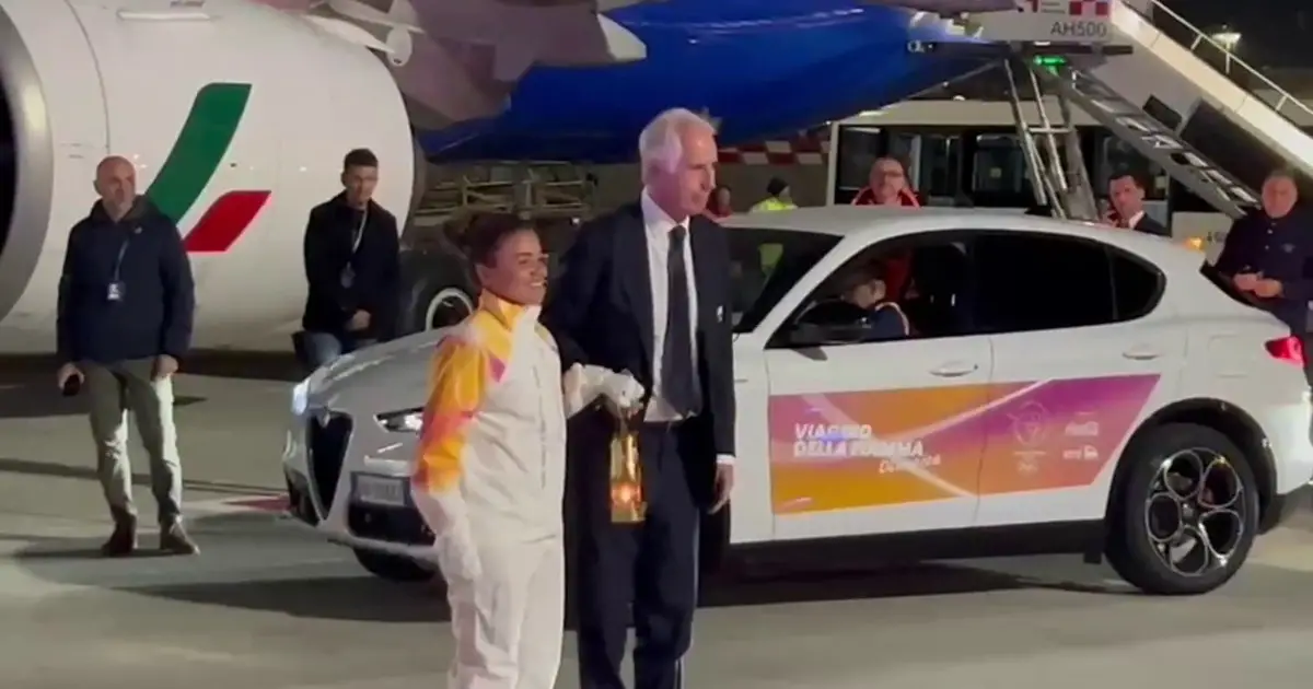 Atterrata a Fiumicino la fiamma olimpica di Milano-Cortina
