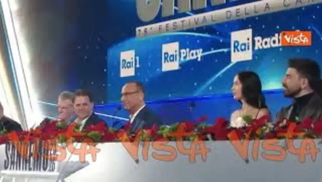 (Agenzia Vista) Sanremo, 26 febbraio 2026 “Con i fiori non ce l'ho fatta, non mi sono reso conto che il brano stava finendo, domani gliene porterò dieci. ” Così il conduttore Carlo Conti durante la conferenza stampa. Fonte: Agenzia Vista / Alexander Jakhnagiev