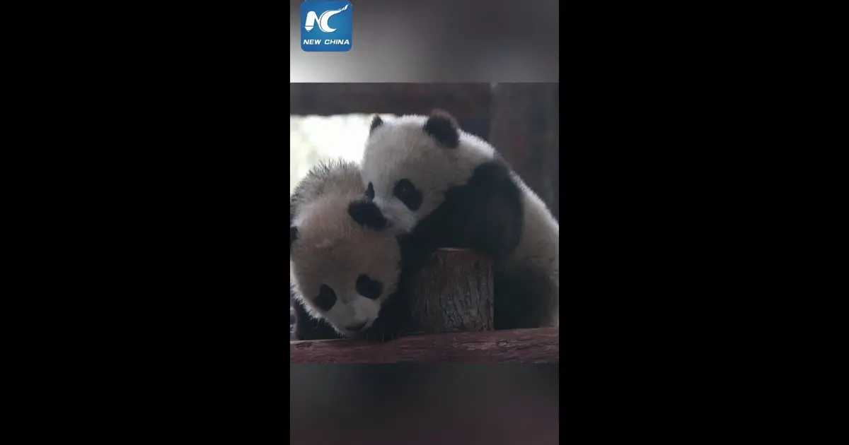 Due cuccioli gemelli di panda debuttano in pubblico allo Shanghai Wildlife Park