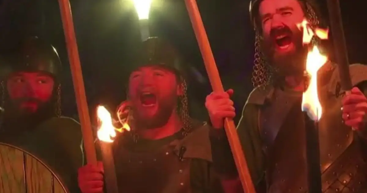 Edimburgo, 30 dic. (askanews) - Guidati da una squadra di vichinghi e da una banda di cornamuse, 15.000 persone hanno preso parte a una fiaccolata attraverso il centro storico di Edimburgo. Il lungo corteo luminoso ha dato il via ai festeggiamenti di Hogamanay nella capitale scozzese per celebrare il nuovo anno.