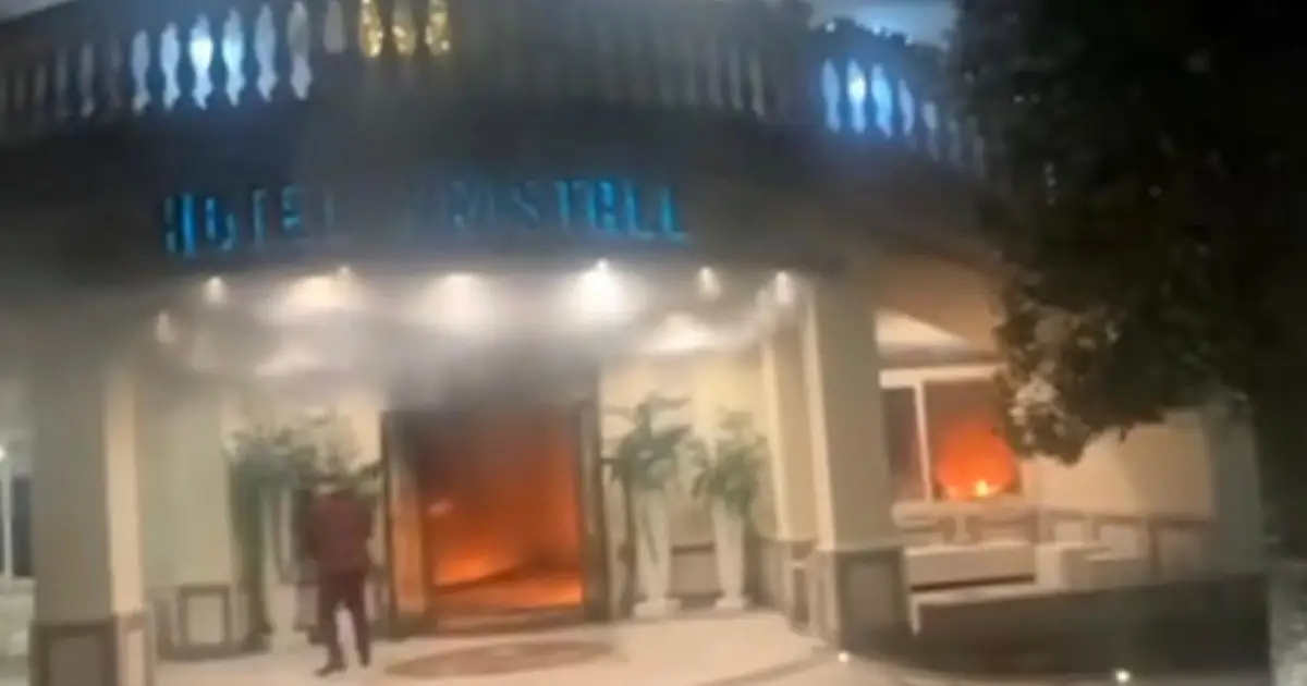 La torta nuziale imbandita su un tavolo circondato da una batteria di fuochi d'artificio nella elegante hall di un albergo ristorante, il Kristall di Ariano Irpino, in provincia di Avellino. Allo scoccare della mezzanotte fontane luminose avrebbero incorniciato gli sposi che si baciano mentre tagliano la prima fetta del dolce che suggella la fine di un banchetto andato avanti per tutto il giorno. Fotografo e videomaker avrebbero immortalato l'istante, mentre una schiera di parenti e amici armati di smartphone avrebbero provveduto a diffondere le immagini del momento piu' scenografico. Almeno cosi' era nei piani degli sposi. La sorpresa c'e' stata ma nessuno avrebbe mai potuto orchestrare per un matrimonio felice e scintillante un finale da disaster movie. E invece: sposo in ospedale, ristorante devastato, sposa sotto shock, invitati presi dal panico e abiti in fumo. E tutto per una torta scenografica. Le fontane di fuoco hanno fatto il loro dovere, fin troppo. Le scintille sono arrivate alla controsoffittatura e ai tendaggi e immediatamente hanno preso fuoco. Non c'e' stato neppure il tempo di attivare gli estintori. In pochi minuti la hall dell'albergo dove si stava concludendo la notte scorsa il banchetto e' stata invasa dalle fiamme, mentre tra gli invitati si diffondeva il panico. Il personale dell'albergo ha aiutato le persone a mettersi in salvo, mentre venivano allertati i soccorsi. Lo sposo sulle prime ha cercato di spegnere le fiamme ma e' stato poi investito dal fuoco. E' l'unico che ha avuto bisogno di un ricovero in ospedale, ha riportato infatti ustioni di secondo grado al volto e alle mani. Anche alcuni invitati si sono rivolti al pronto soccorso dell'ospedale Frangipane di Ariano Irpino, ma nessuno ha riportato gravi conseguenze, solo una lieve intossicazione da fumo e tanto spavento. Sul posto sono intervenuti i carabinieri della compagnia di Ariano e i vigili del fuoco del distaccamento di Grottaminarda. I danni sono ingenti.