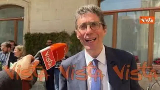 (Agenzia Vista) Roma, 9 aprile 2026 “Discorso di Meloni mostra che è iniziata la campagna elettorale, Governo in crisi irreversibile”, il commento di Riccardo Magi +Europa in piazza Montecitorio dopo l'informativa della Premier Giorgia Meloni in Aula. Fonte: Agenzia Vista / Alexander Jakhnagiev