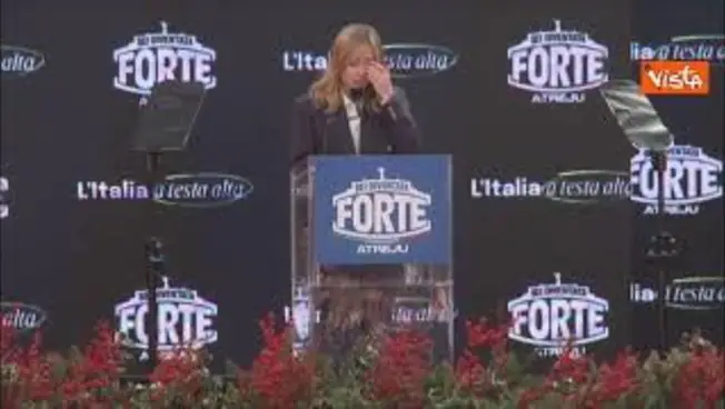 (Agenzia Vista) Roma, 14 dicembre 2025 "Per il famoso cinque a uno che dovevano infliggerci alle elezioni regionali si sono giocati ogni carta possibile, inclusi il riconoscimento dello stato della Palestina se avessero vinto nelle Marche e l'esenzione dal bollo auto se avessero vinto in Calabria. Roba che Cetto La Qualunque in confronto è Otto von Bismarck. Non è andata così. A mettere fine alla guerra in Palestina è stato l'odiato Donald Trump e le regionali sono finite 3 a 3". Così la presidente del Consiglio e di FdI Giorgia Meloni ad Atreju. Atreju Fonte: Agenzia Vista / Alexander Jakhnagiev