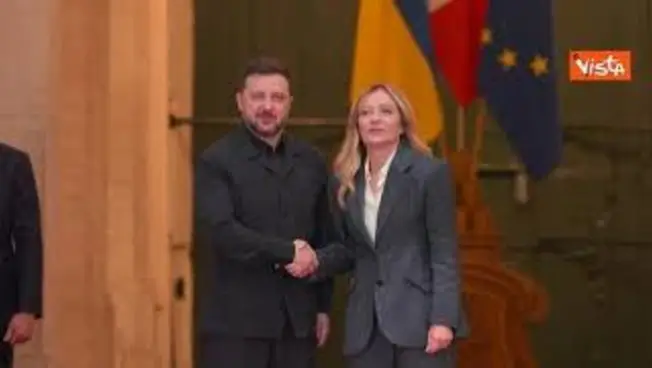 Meloni riceve a Palazzo Chigi il Presidente ucraino Zelensky