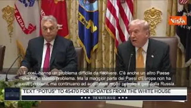 (Agenzia Vista) Usa, 07 novembre 2025 "Lo stiamo valutando perché è molto difficile per l'Ungheria ottenere petrolio e gas da altre aree. Come sapete, non hanno il vantaggio di avere il mare. È un grande Paese. È un Paese grande, ma non ha il mare. Non hanno i porti. E così, hanno un problema difficile da risolvere. C'è anche un altro Paese che ha lo stesso problema. Ma la maggior parte dei Paesi d'Europa non ha questi problemi, ma continuano ad acquistare molto petrolio e gas dalla Russia. Questo mi disturba molto perché li aiutiamo e loro comprano petrolio e gas dalla Russia. Quindi questa domanda potrebbe essere posta in modo forse più accurato se parlassi di molti paesi europei, non necessariamente dell'Ungheria, perché l'Ungheria è in una posizione diversa, ma molti Paesi europei stanno acquistando petrolio e gas dalla Russia e lo fanno da anni e hanno continuato a farlo. Quindi questo sarà uno degli argomenti di oggi", lo ha detto Trump incontrando Orban alla Casa Bianca. X Fonte: Agenzia Vista / Alexander Jakhnagiev