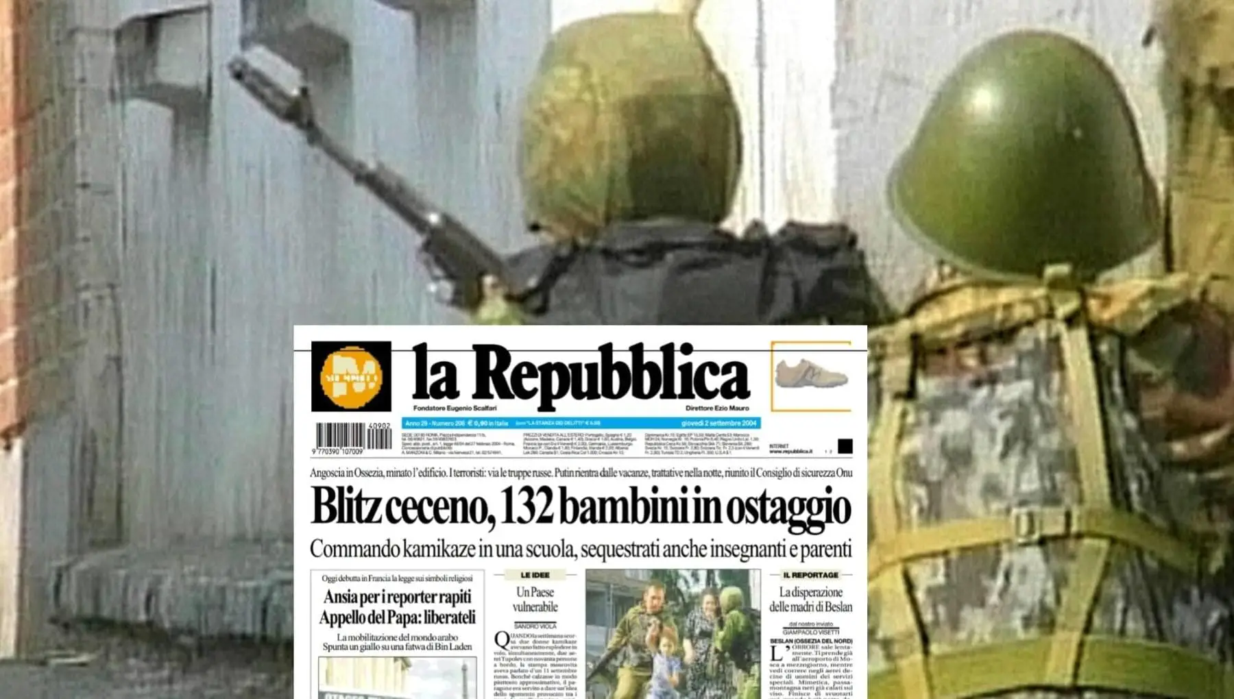 R50/ Il 1 settembre 2004 la scuola Numero 1 di Beslan, nell'Ossezia del Nord, fu occupata da 32 terroristi, fondamentalisti islamici e separatisti ceceni. Circa 1.200 persone furono tenute sotto sequestro. Due giorni dopo, quando le forze speciali russe fecero irruzione, ci fu un massacro nel quale morirono più di 300 persone, fra cui 186 bambini. Pubblichiamo il reportage di Giampaolo Visetti, uscito il 2 settembre 2004