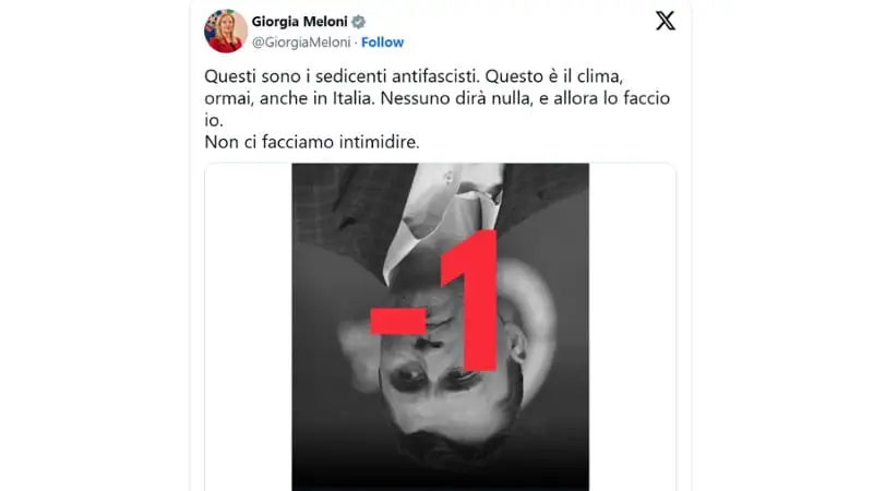 Foto di Kirk a testa in giù, Meloni: “Sedicenti antifascisti, non ci facciamo intimidire”