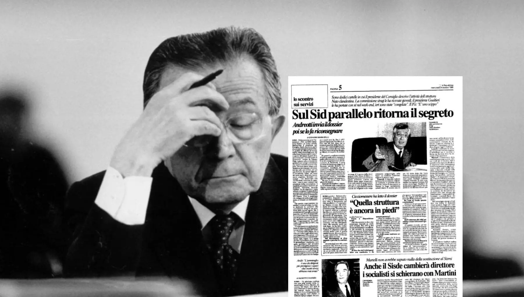 R50 / Il 24 ottobre 1990 il presidente del Consiglio Giulio Andreotti, inviando un dossier alla Commissione stragi, ammise l’esistenza dell’organizzazione clandestina promossa in Italia per costituire strutture paramilitari “in sonno” capaci di combattere l’eventuale attacco dei Paesi comunisti. Le dodici cartelle contenevano 622 nomi di aderenti. Il documento intitolato “Sid Parallelo” era rimasto a lungo riservato. Ecco l’articolo di Giovanni Maria Bellu che quel giorno raccontava come si è arrivati alla divulgazione