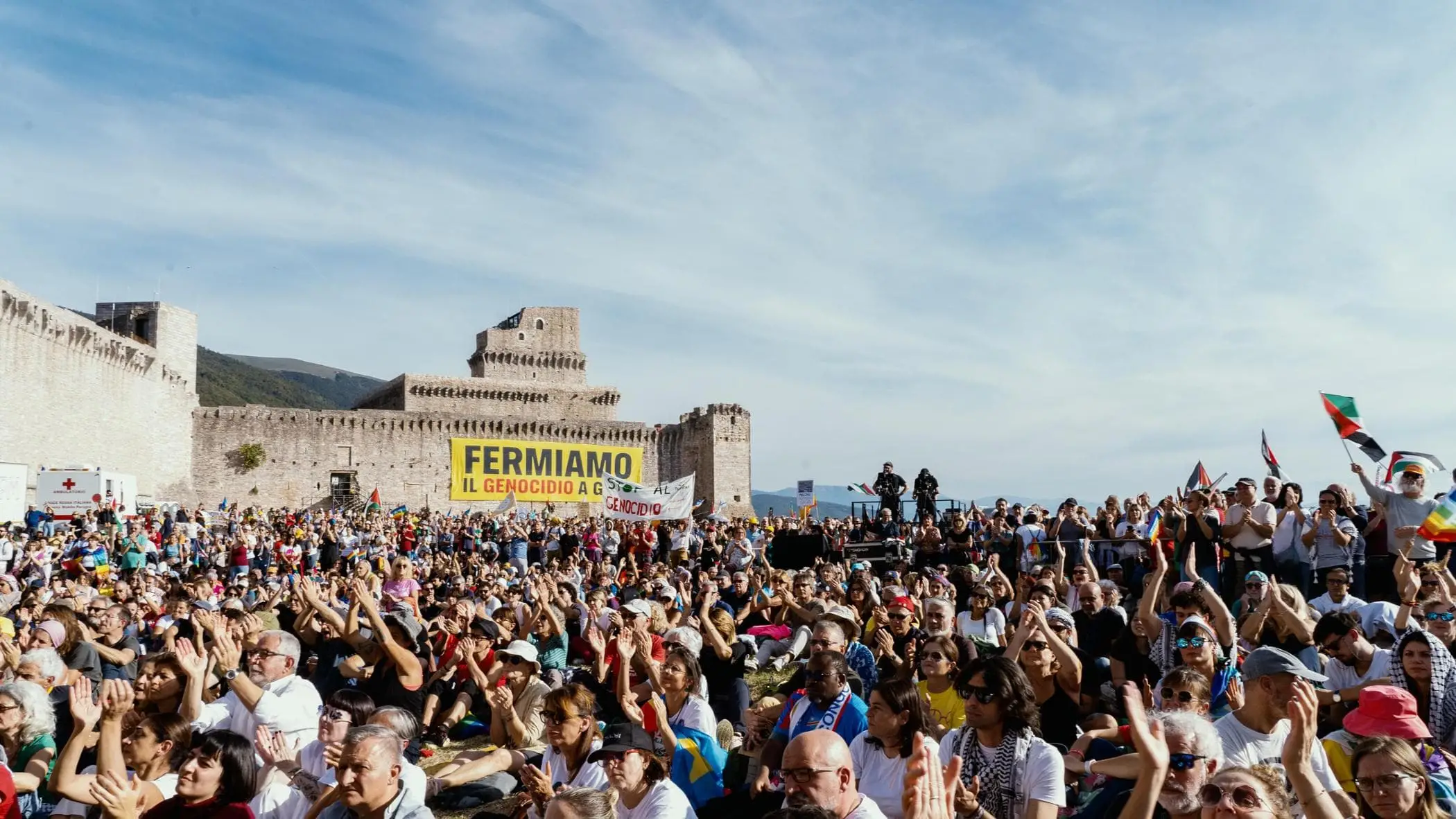Da Perugia ad Assisi record di partecipazione. Schlein: ora riconoscere la Palestina. Conte: stop al riarmo. Avs: un segnale al governo