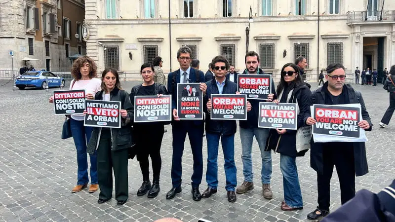Ieri il flashmob di +Europa davanti a Palazzo Chigi contro la visita del premier ungherese