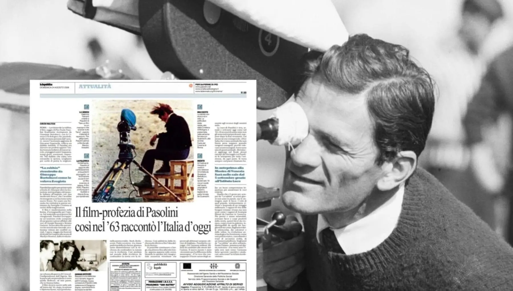 R50 / La notte del 2 novembre 1975 il poeta, scrittore e regista, all’età di 53 anni, fu assassinato sulla spiaggia dell’Idroscalo di Ostia. Ecco un articolo di Curzio Maltese che, il 24 agosto 2008, in occasione della presentazione del restauro del film “La rabbia” (1963), analizza la capacità di interpretare la realtà e il futuro che l’intellettuale aveva sviluppato