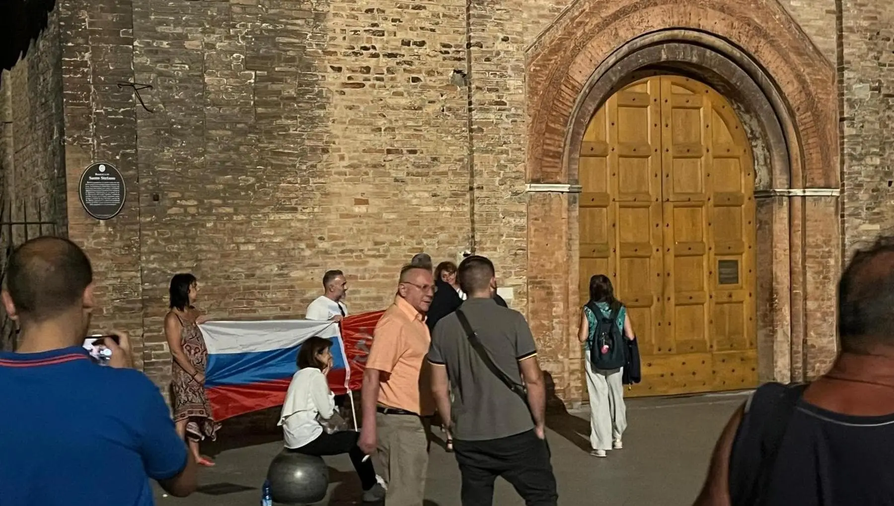 Romanovsky e il concerto annullato a Bologna: al sit-in di protesta spunta la bandiera della Russia