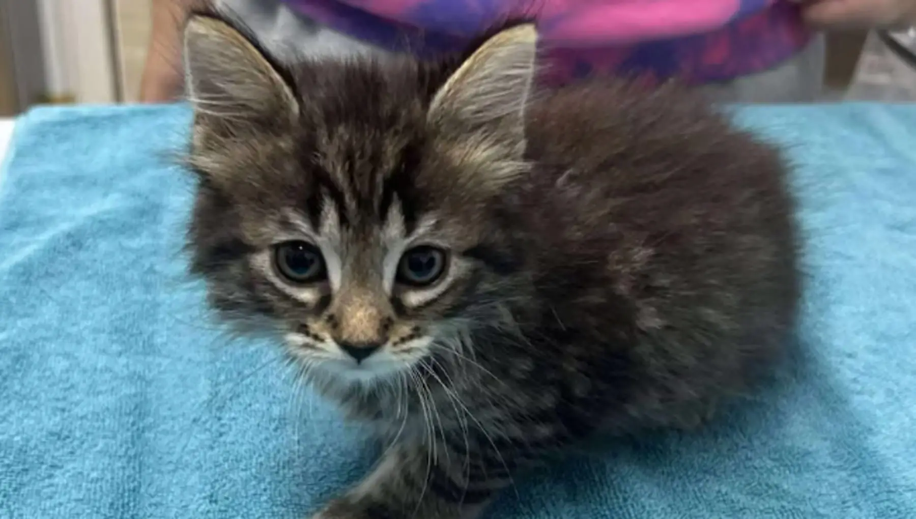 Era rannicchiato vicino all’ingresso, accanto a una scatola di cibo vuota e a un biglietto scritto a mano. Così è stato trovato un giovane gatto …