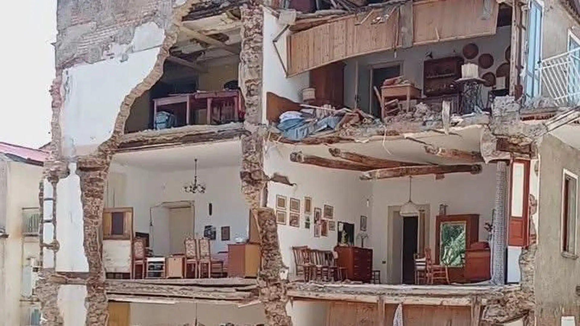 Crollo improvviso a Lamezia: così il palazzo resta in piedi senza una facciata