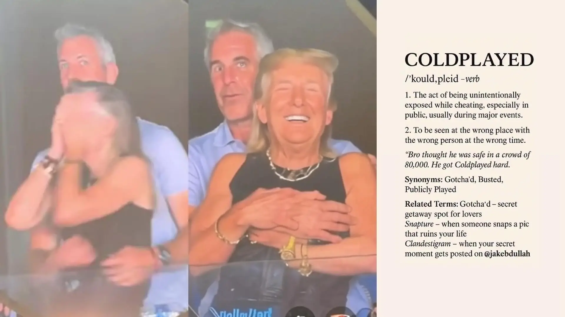 Da Sangiuliano a Trump-Epstein, il video degli amanti al concerto dei Coldplay è un meme globale