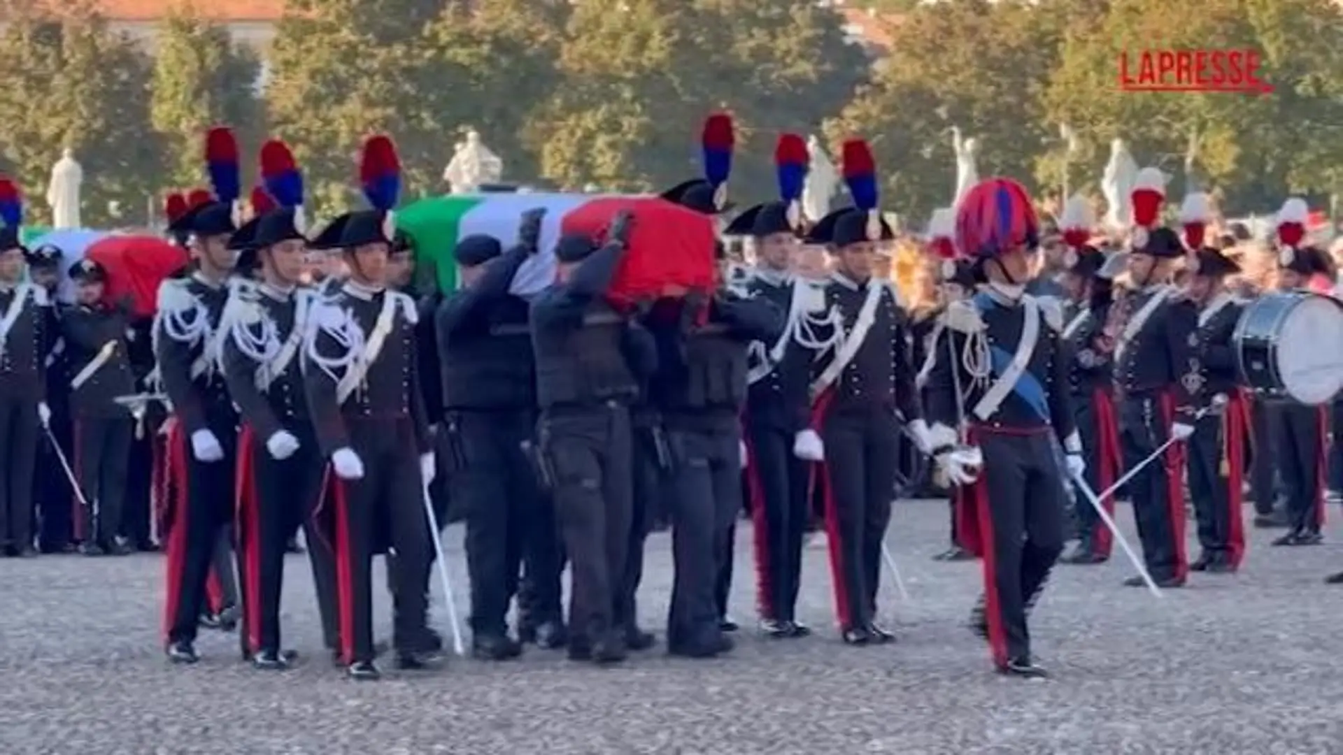 Sono stati accolti dagli applausi e dal picchetto d'onore, al loro arrivo alla basilica di Padova per i funerali di Stato, i feretri dei carabinieri …