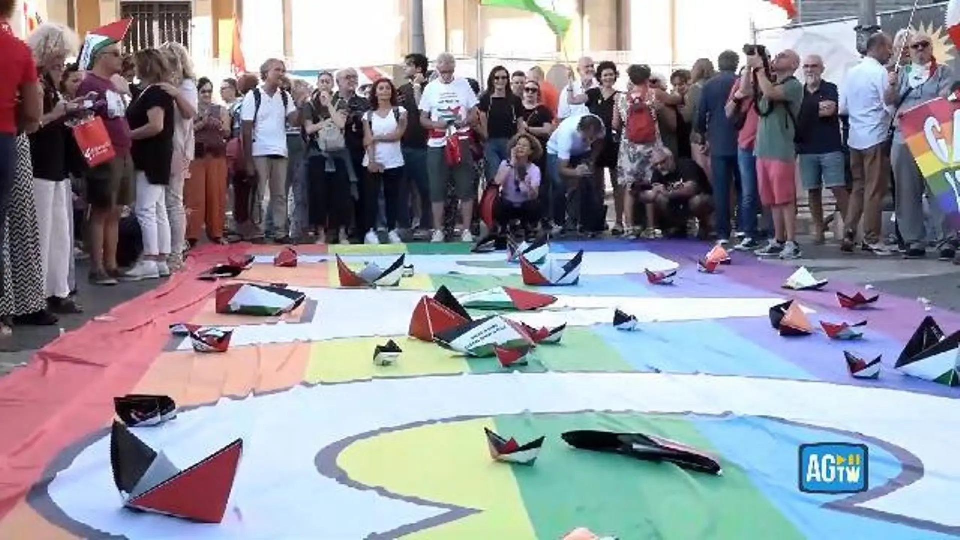 "Fermiamo la barbarie a Gaza": barchette di carta e bandiere della pace per il sit in pro Pal a Roma