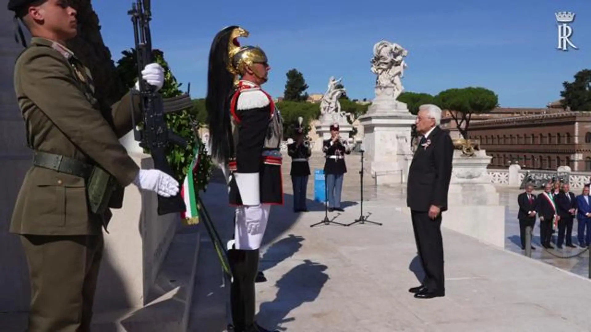 Festa della Repubblica, Mattarella depone una corona all'Altare della Patria