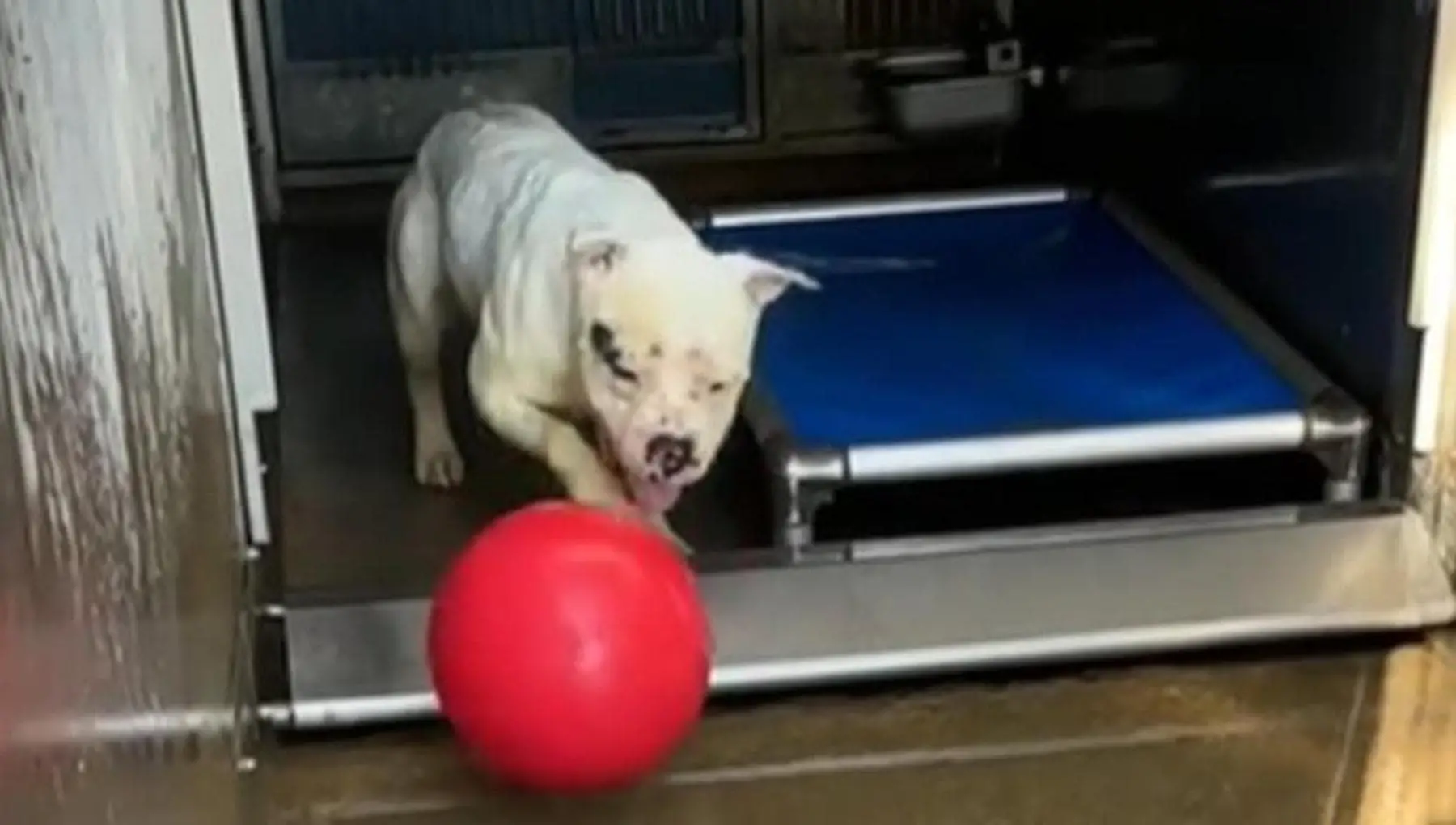 Illuso di esser stato adottato, la delusione del cane Casper che gioca a palla da solo nel suo box