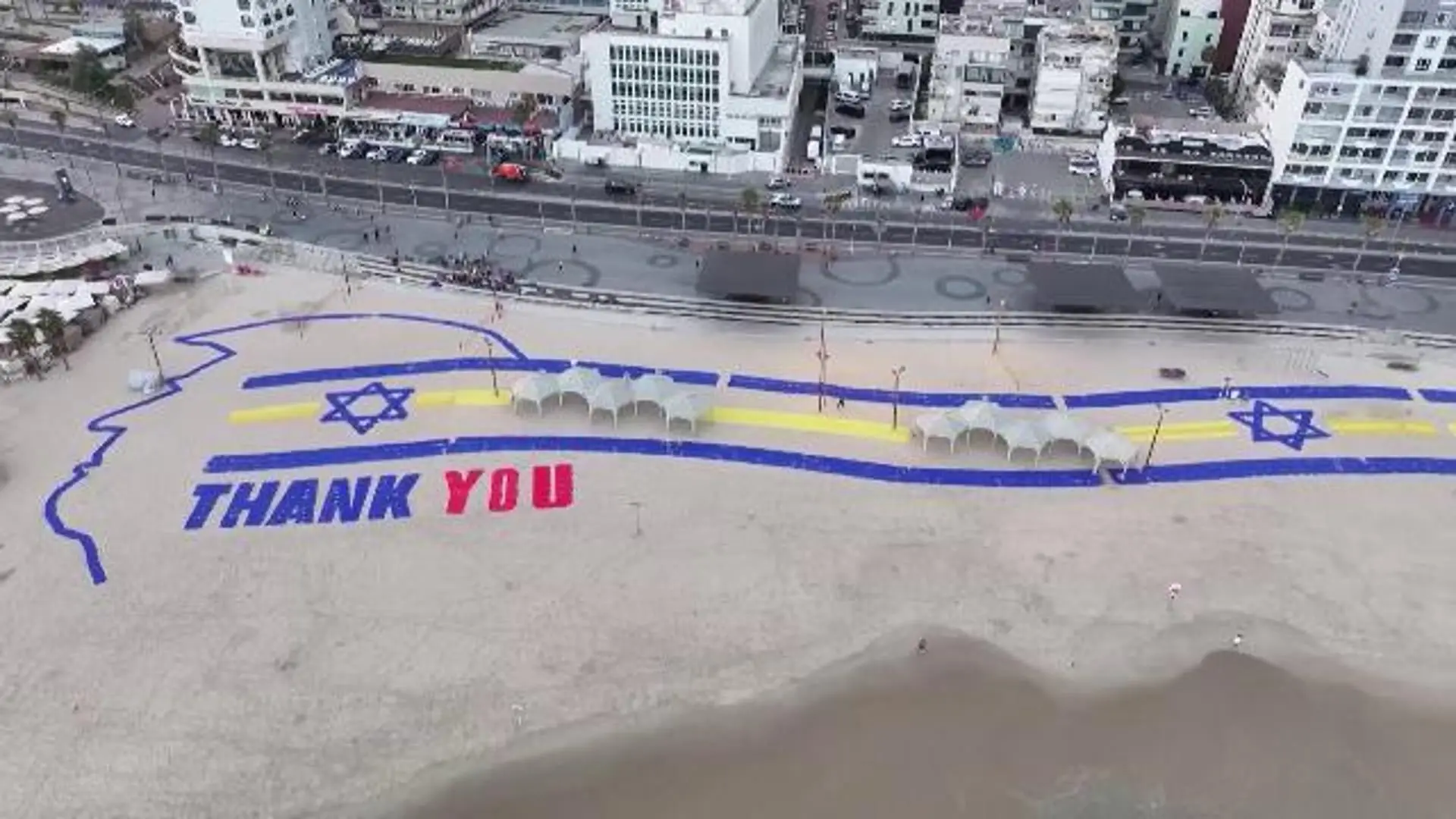 Sulla spiaggia di Tel Aviv un “grazie” a Trump per la fine della guerra: le immagini dall'alto
