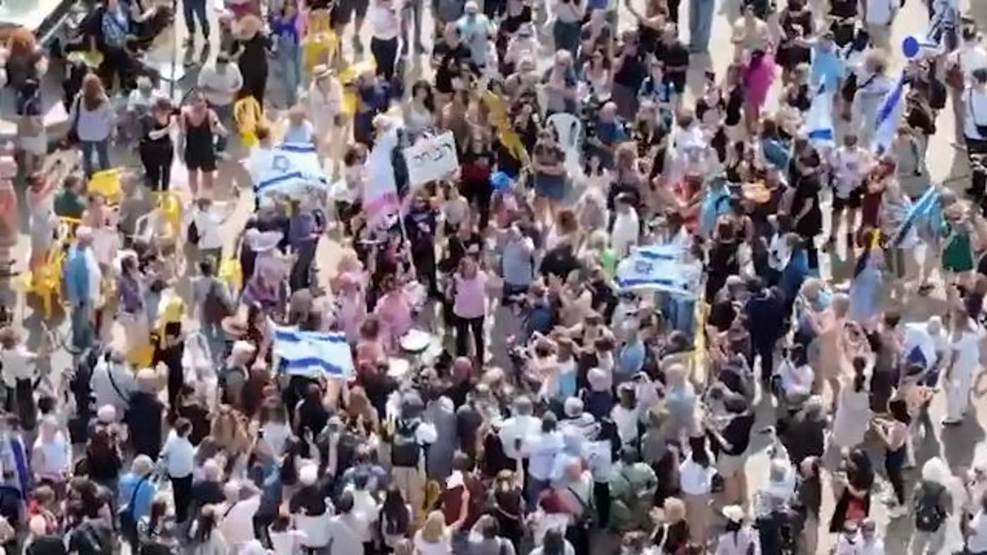 Tel Aviv, in centinaia festeggiano con bandiere e cartelli in attesa della firma dell'accordo